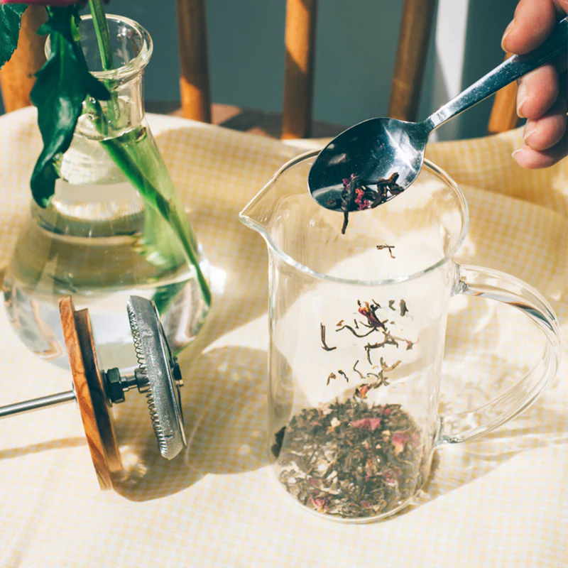 This is a press type tea maker where you pour tea leaves and hot water into the press and press down on the filter. In addition to black teas, herbal teas can be brewed with ease as this tea maker allows for all tea options.
